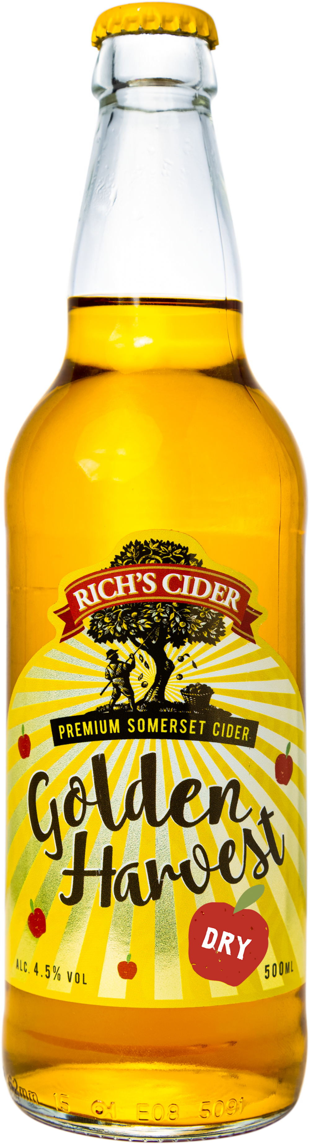 Golden Harvest is our 4.5% ABV cider. It is a light, refreshing cider, slightly sparkling in our bottles or still in our boxes, with added apple juice which gives it a fruity aroma.