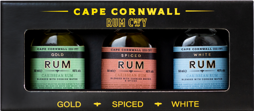 Our newly designed Gift Selection Box comprises a 50ml bottle of each of our Cape Cornwall Rums. Beautifully presented in a toughened black gift box. This would make an ideal gift for that special loved one. Sip over ice or add your favourite mixer to our miniature rums. Box includes: