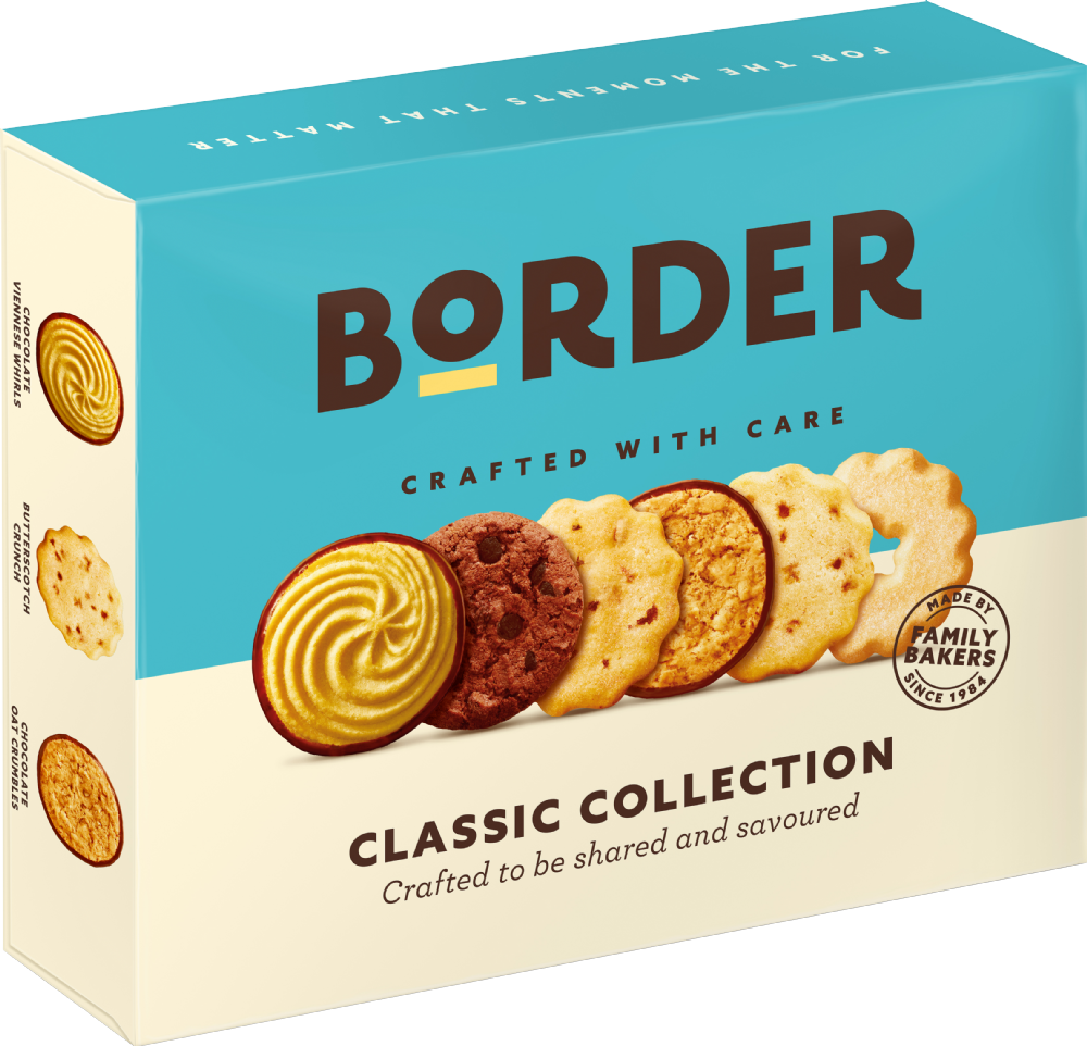 This 400g classic range is made using authentic recipes and good old-fashioned ingredients. This gift box contains Light & Chocolatey Viennese Whirls, Divinely Chocolatey Cookies, Buttery Sultana Melts, Chocolate Crumbles, Light & Buttery Shortbread Rings, and Sweet Memories Butterscotch Crunch.