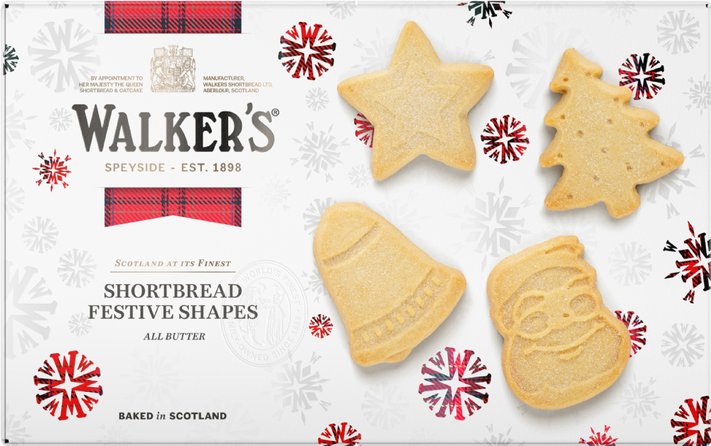 Walker’s Festive Shapes Shortbread is made to our traditional family shortbread recipe. Our festive carton is full of festive shaped pure butter shortbreads including Christmas bells, Christmas trees, Christmas Stars and Father Christmas faces.