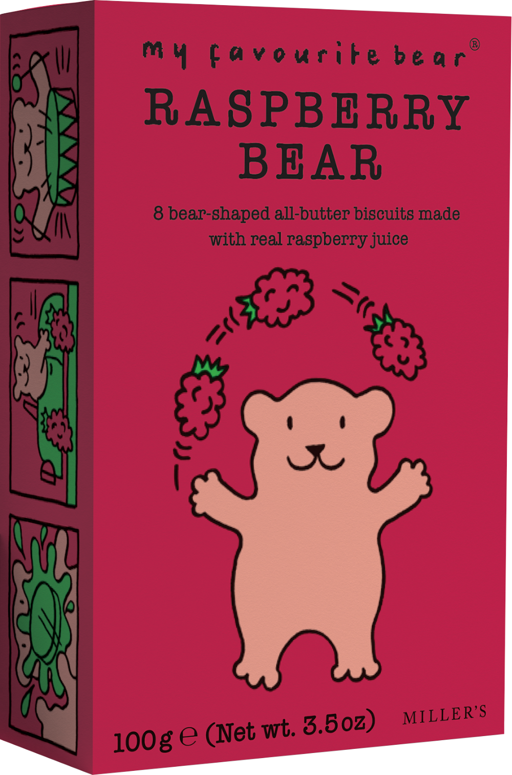 All-butter, all-natural, bear shaped biscuits, with real raspberry juice.