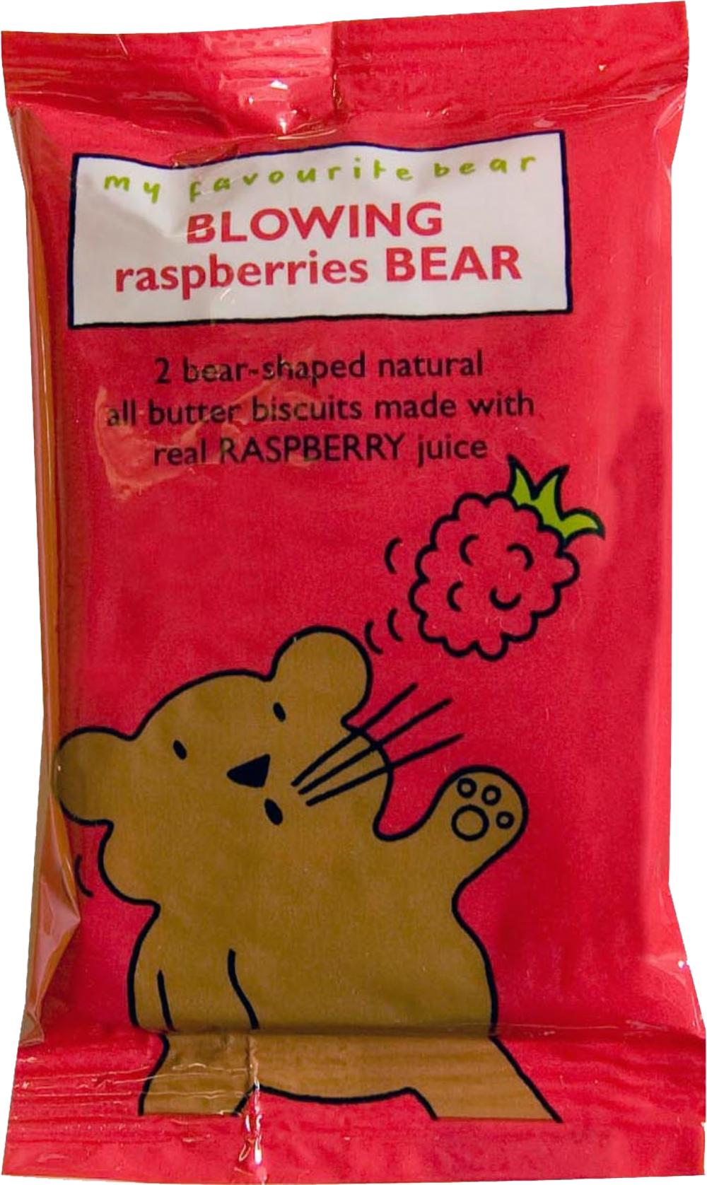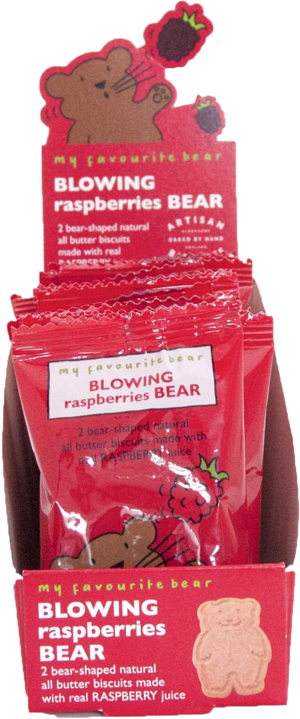 All-butter, natural, bear-shaped biscuits, made with real raspberry juice.