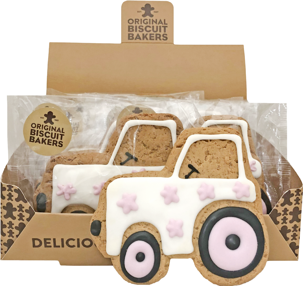 Tilly Tractor with her hand iced pink wheels and flower power décor is perfect for any tractor fan! Each tractor is wrapped in a crystal clear cellophane wrapper.