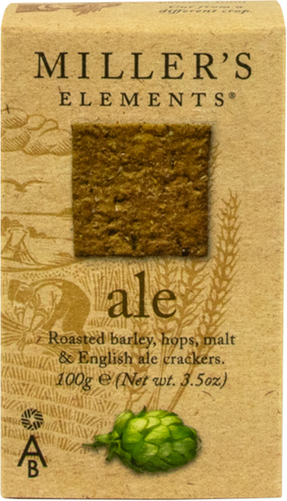 Made with hops, roasted wheat, barley and malt. A deeply savoury cracker for cheese. The Miller's tribute to Earth, Fire, Water… and Ale. The basic building blocks of a life worth living.