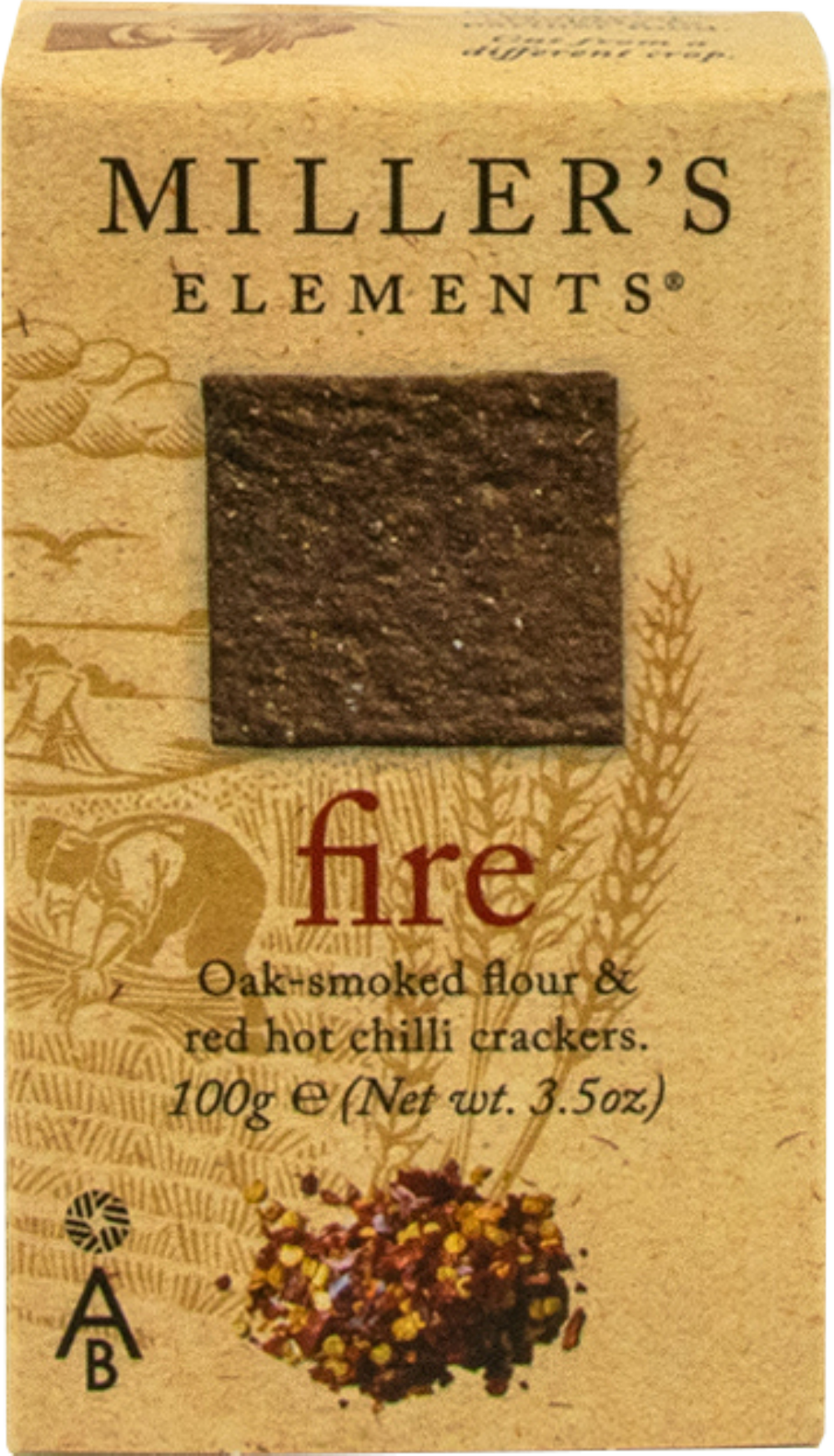 Oak-smoked flour and red hot chilli in a cracker that more than lives up to its name. Smoky and fiery, with a coarse and crumbly texture. The Miller's tribute to Earth, Fire, Water… and Ale. The basic building blocks of a life worth living.