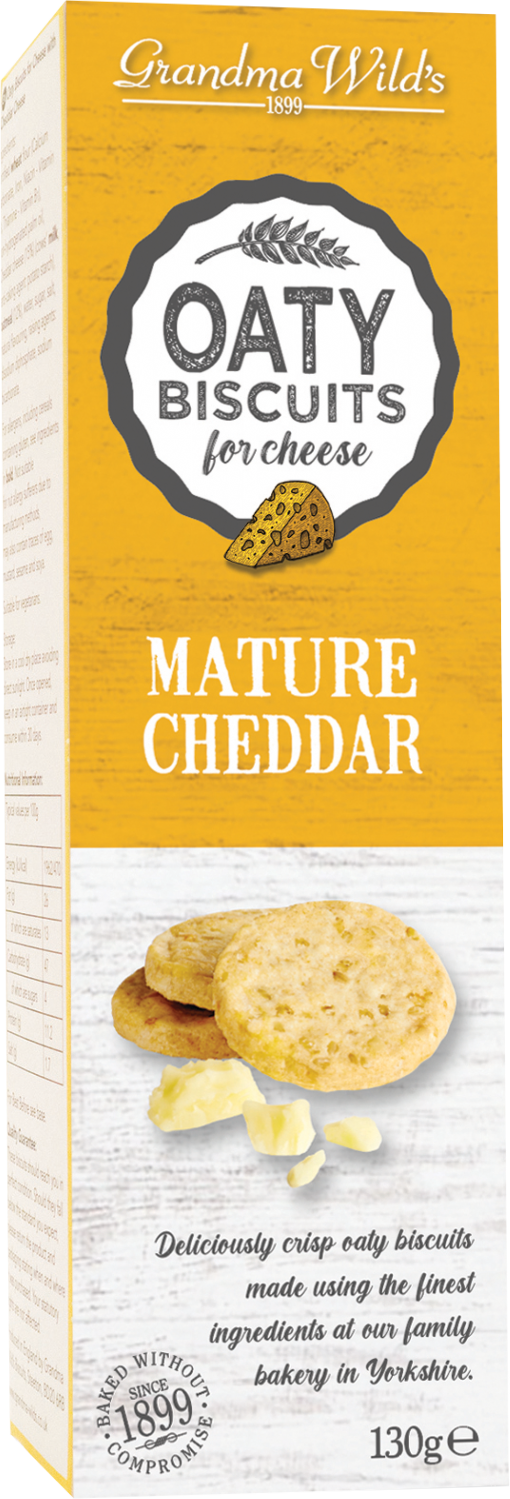 Fortified wheat flour (Calcium Carbonate, Iron, Niacin –Vitamin B 3 , Thiamine-Vitamin B 1 ), non-hydrogenated palm oil, Cheddar cheese (15%) (whole cows milk, starter culture (lactic acid), salt, vegetarian rennet), oatmeal (12%), water, sugar, salt, natural flavouring, raising agents: disodium diphosphate, sodium bicarbonate.