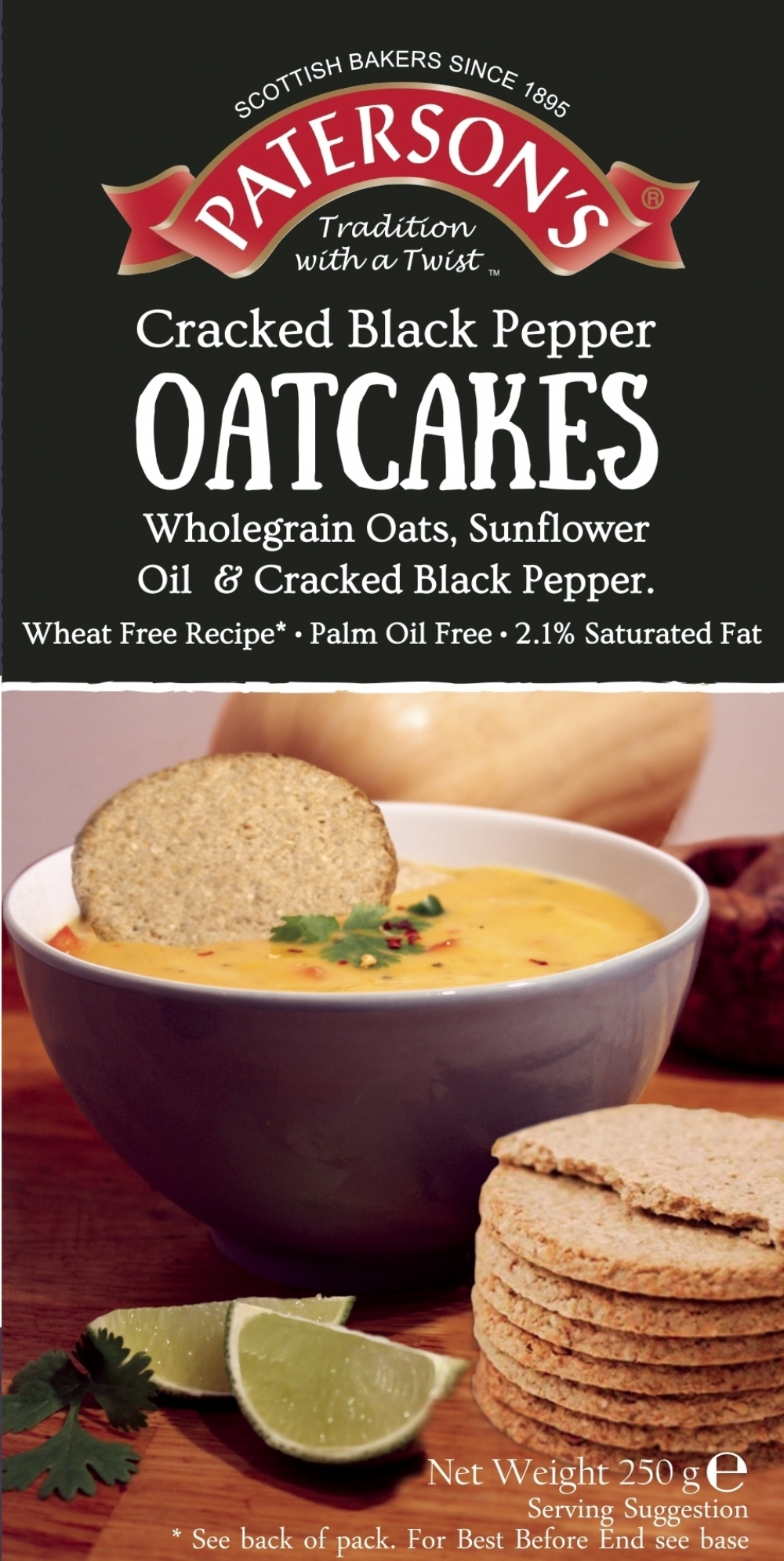 Oatmeal, Sunflower Oil (9%), Salt, Cracked Black Pepper (0.8%), Skimmed Milk Powder.
