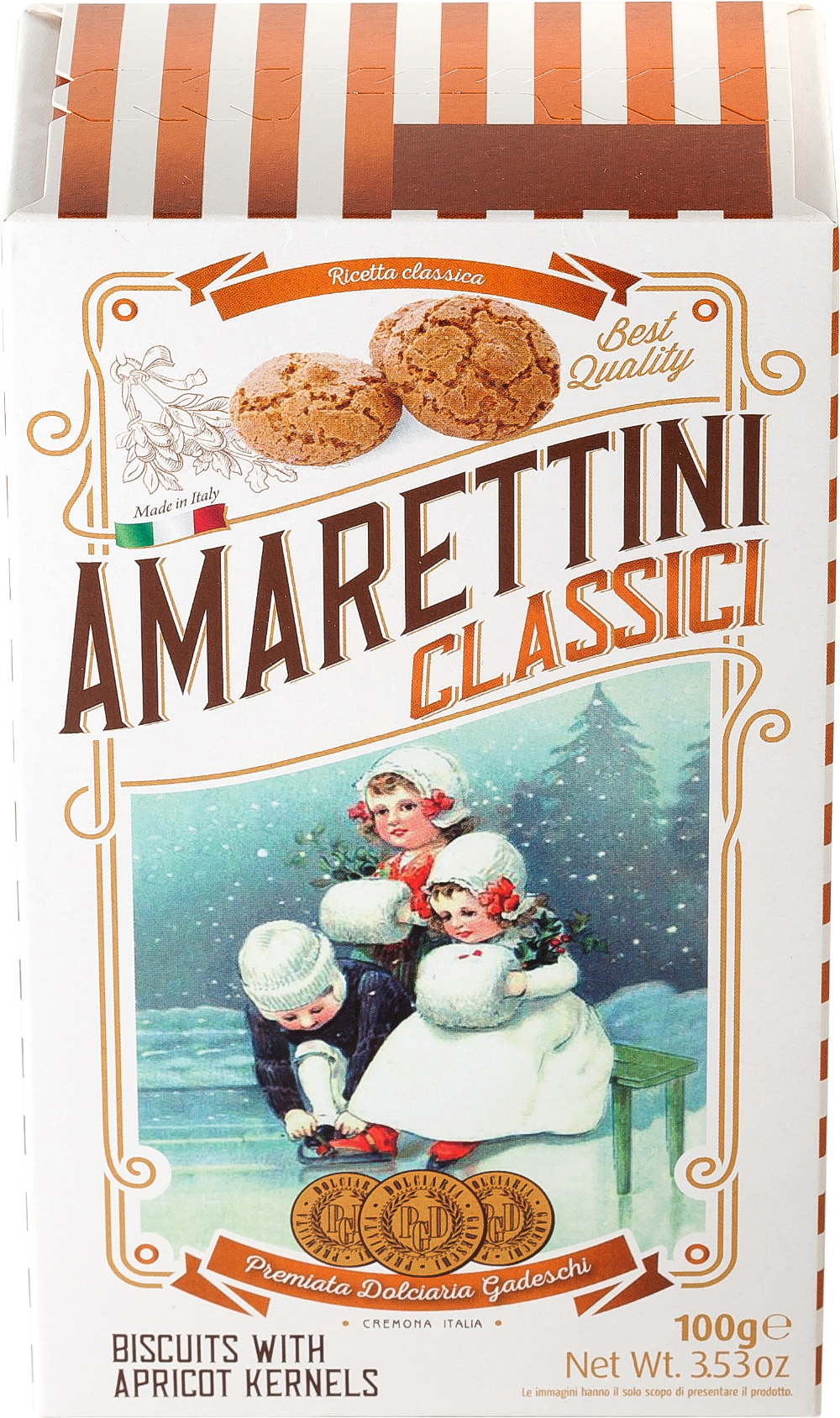 A smaller version of amaretti biscuits, amarettini are light, crunchy, airy little biscuits made with aromatic almonds - perfect for dunking into espresso or crumbling over tiramisu. With a nostalgic, traditional Italian-style illustration, the pretty box makes Gadeschi's Amarettini a really lovely Christmas stocking gift or take-along present when visiting friends and family.