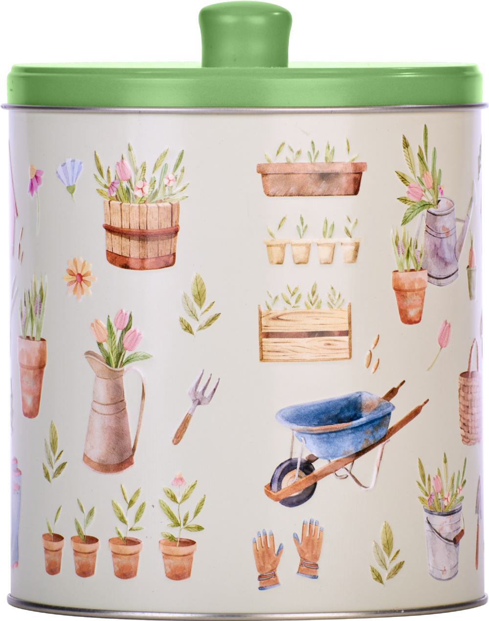 This beautifully embossed barrel is illustrated with charming English country garden tools and planters, which conjures up thoughts of long summer days pottering in a Dales garden. This memento biscuit barrel contains three of our very popular flavours: Fruit and Lemon Biscuits: A deliciously short, crisp biscuit scattered with juicy currants complemented by a delicate zest of lemon. Double Chocolate Chip Biscuits: A fabulously rich, crumbly chocolate biscuit with the added chocolate flavour boost of chocolate chips and our seriously good All Butter Shortbread, which melts in the mouth; Sublime with a hot cup of tea. This keepsake tin makes a delightful thank you gift or a lovely treat for yourself.