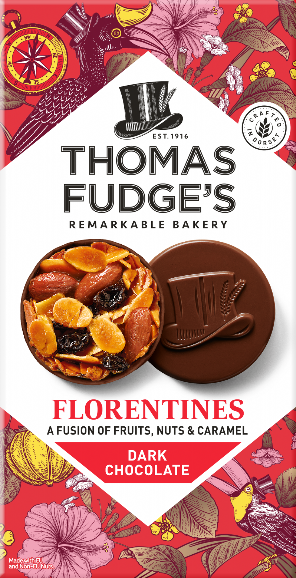 Dark Chocolate (28%) (Cocoa Mass, Sugar, Cocoa Butter, Emulsifier (Soya Lecithin), Vanilla Flavouring), Almonds (18%), Sugar, Butter (Milk), Cream (Milk), Glucose Syrup, Partially Inverted Sugar Syrup, Sultanas, Candied Mixed Peel (Orange Peel, Glucose Fructose Syrup, Sugar, Lemon Peel), Ginger Syrup, Salt.