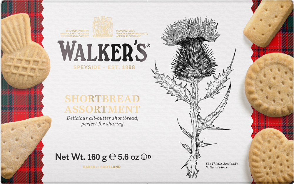 Packed with a variety of classic, all butter shortbreads, this dainty box contains fourteen pieces of Walker's finest shortbread including thistles, rounds, hearts, triangles and fingers. Perfect as a small gift.