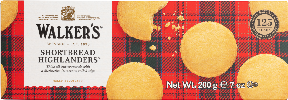 Walkers Shortbread Highlanders have been enjoyed by shortbread lovers for decades and are unique to Walkers. The exclusive recipe which includes creamery butter, finest flour, sugar and salt as well as hand-rolling the edge in crunchy Demerara sugar. Still made today with the recipe fashioned by Joseph Walker in 1898.
