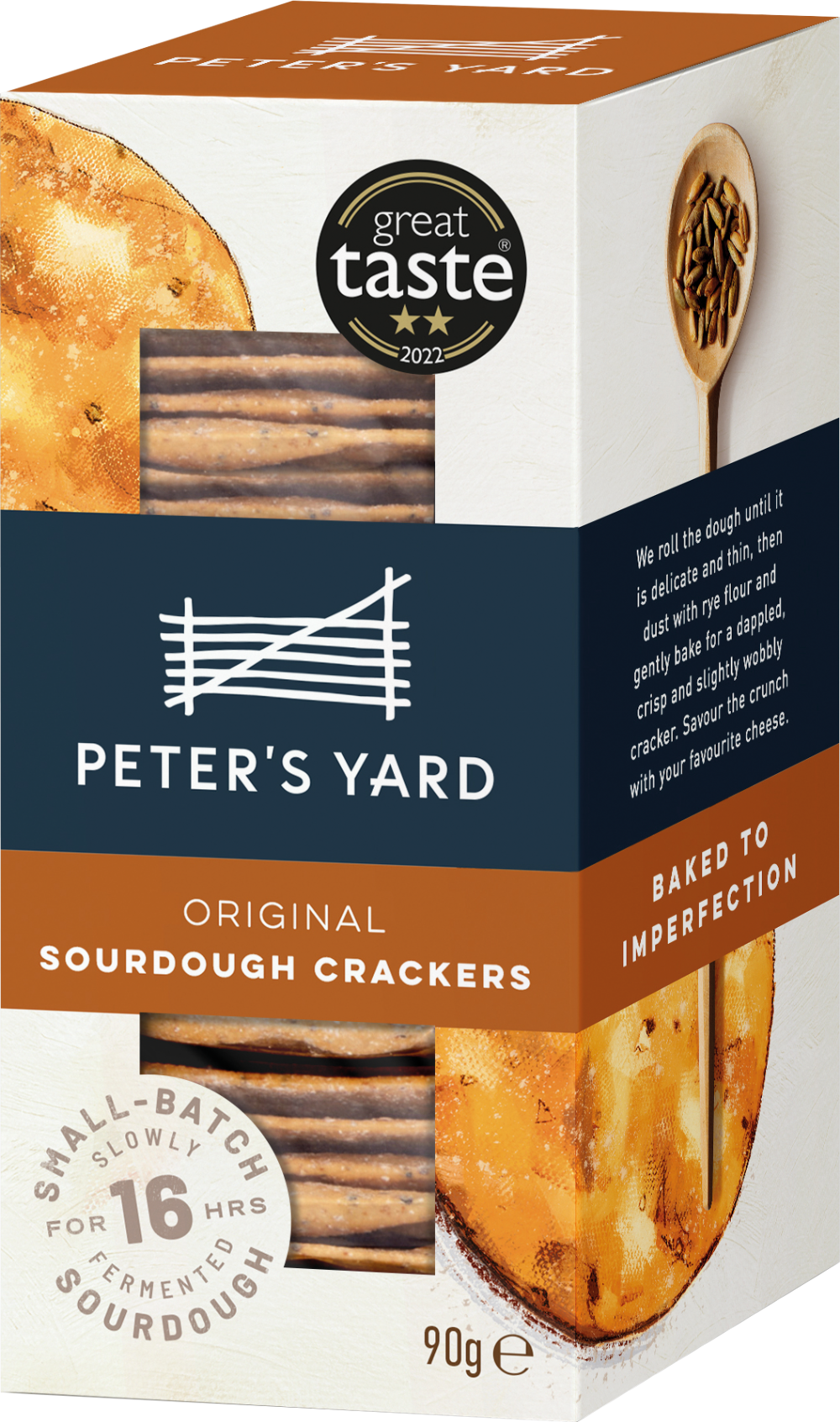 Described as 'the best biscuit for cheese out there' by the judges of the 2015 Great Taste Awards. The sourdough used in every batch is allowed to ferment for 16 hours, resulting in a light texture, dimpled appearance and subtle flavour that is the perfect partner for cheese and is fantastic with smoked salmon and pâté.