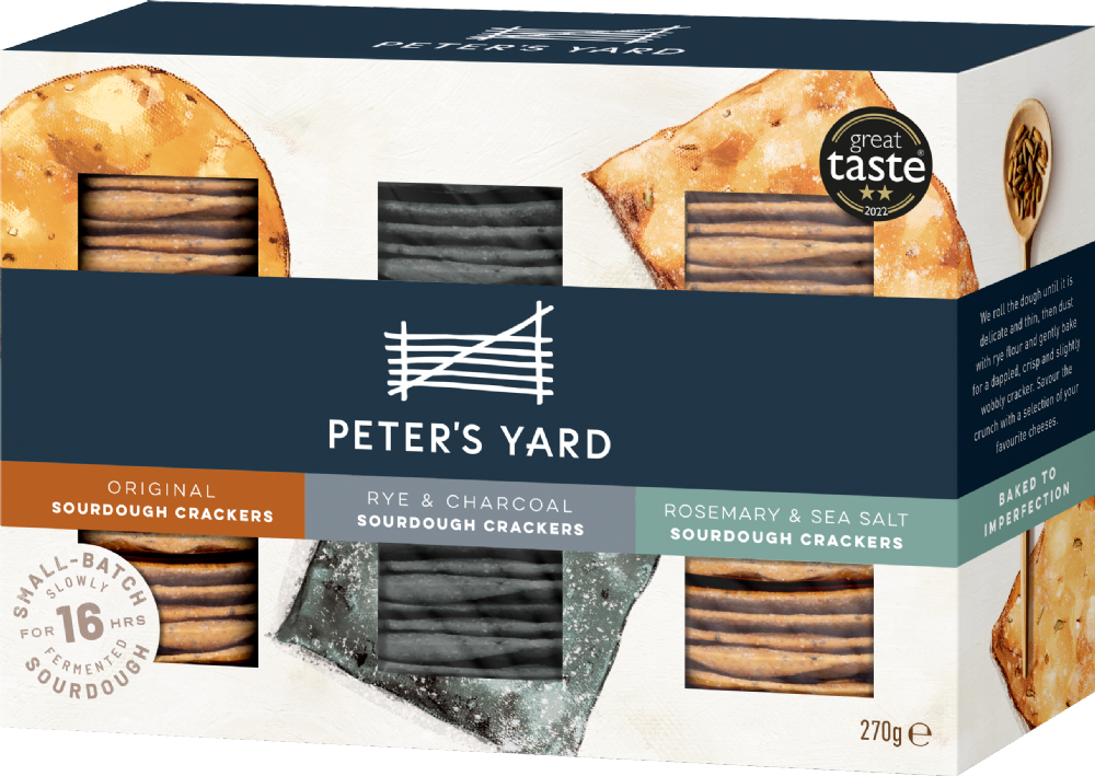 These sourdough crackers are made in small batches with our signature sourdough starter, which slowly ferments for 16 hours. They’re crafted from natural ingredients including Shipton Mill flour and organic fresh milk. This selection is designed to accompany any cheeseboard and contains three individually wrapped trays. Our Original sourdough crackers pair well with any cheese, while Rye & Charcoal works beautifully with soft cheeses such as a goat’s or ripe Brie. Rosemary & Sea Salt complements the flavour of a mild crumbly cheese like Caerphilly.