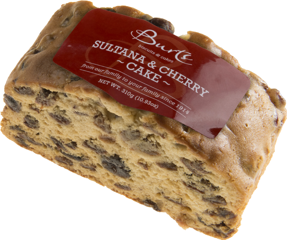 Sultanas (28%), Wheat Flour (Calcium Carbonate, Iron, Niacin, Thiamin), Sugar, Natural Cherries (9%) (Cherries, Glucose Syrup, Colour (Anthocyanin), Acidity Regulator (Citric Acid), Preservative (Sulphur Dioxide)), Vegetable Oil (Rape, Palm), Egg, Vegetable Margarine (Vegetable Fat (Palm), Vegetable Oil (Rape, Sunflower), Water, Salt, Emulsifier (Polyglycerol Esters of Fatty Acids), Flavourings, Colours (Annatto, Curcumin)), Glycerine, Soya Flour, Whey Powder (from Milk), Glucose Syrup, Salt, Raising Agents (Diphosphates, Sodium Carbonates), Emulsifier (Mono- and Diglycerides of Fatty Acids), Natural Flavouring, Preservative (Potassium Sorbate).