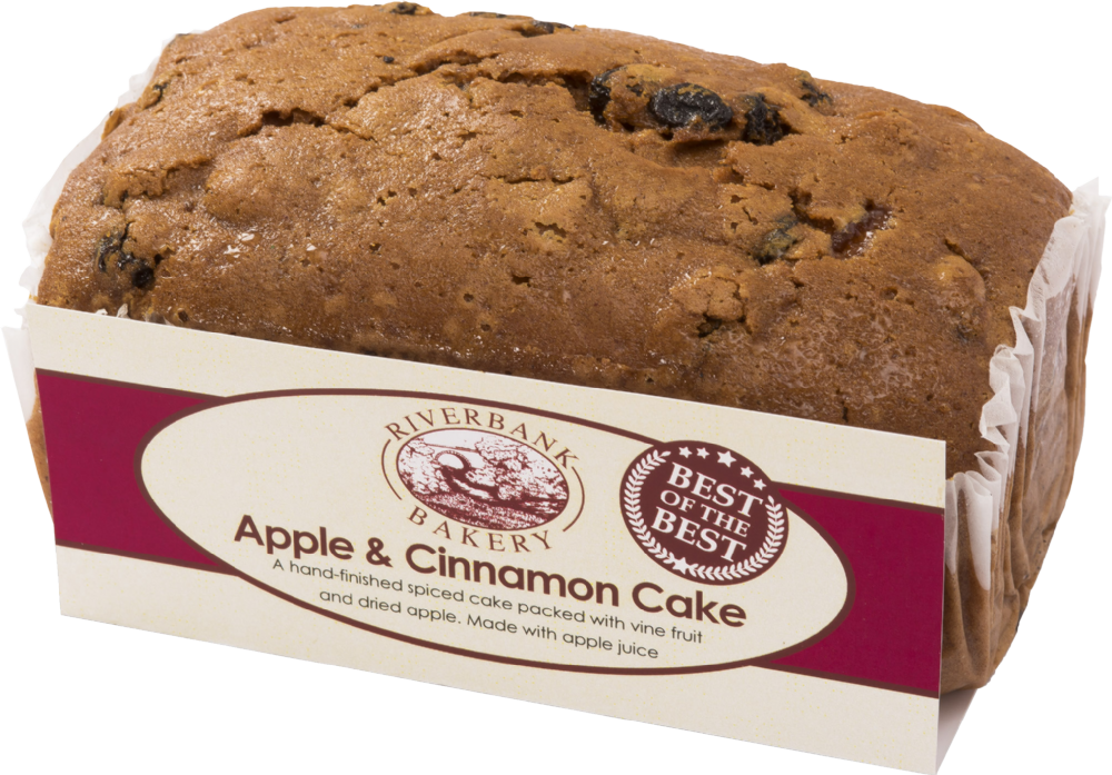 Our apple and cinnamon cake is a hand-finished, spiced cake made with vine fruit and dried apple.