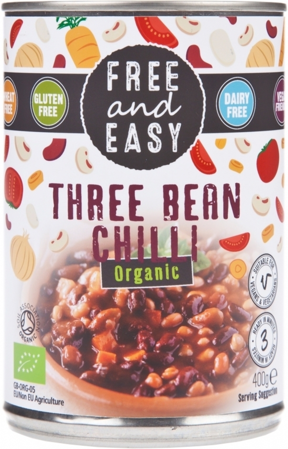 Water, Red Kidney beans* (26%), Tomatoes* (15%), Carrots* (12%), Onions* (8%), Tomato Puree*, Cannellini Beans* (3%), Haricot Beans* (3%0, Rice Flour*, Sea Salt, Paprika*, Chilli Powder* (0.1%), Coriander*, Oregano* and Cumin*.