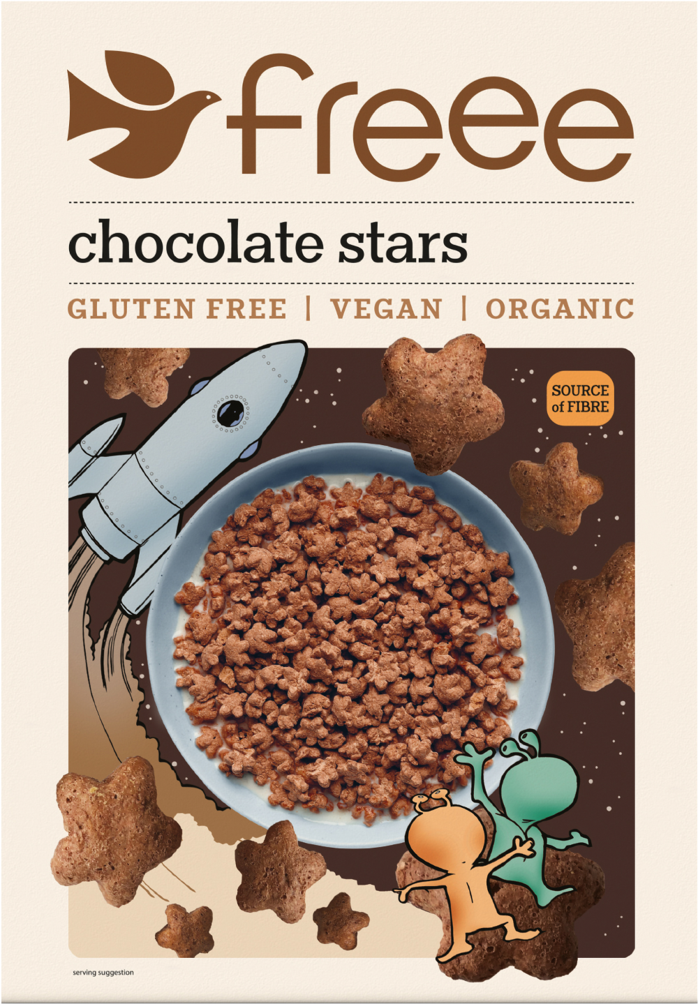 Gluten Free Organic Chocolate Stars are our most popular breakfast cereal. Astronomically tasty, they are made with organic, sustainably grown rice and maize as well as delicious chocolate.
