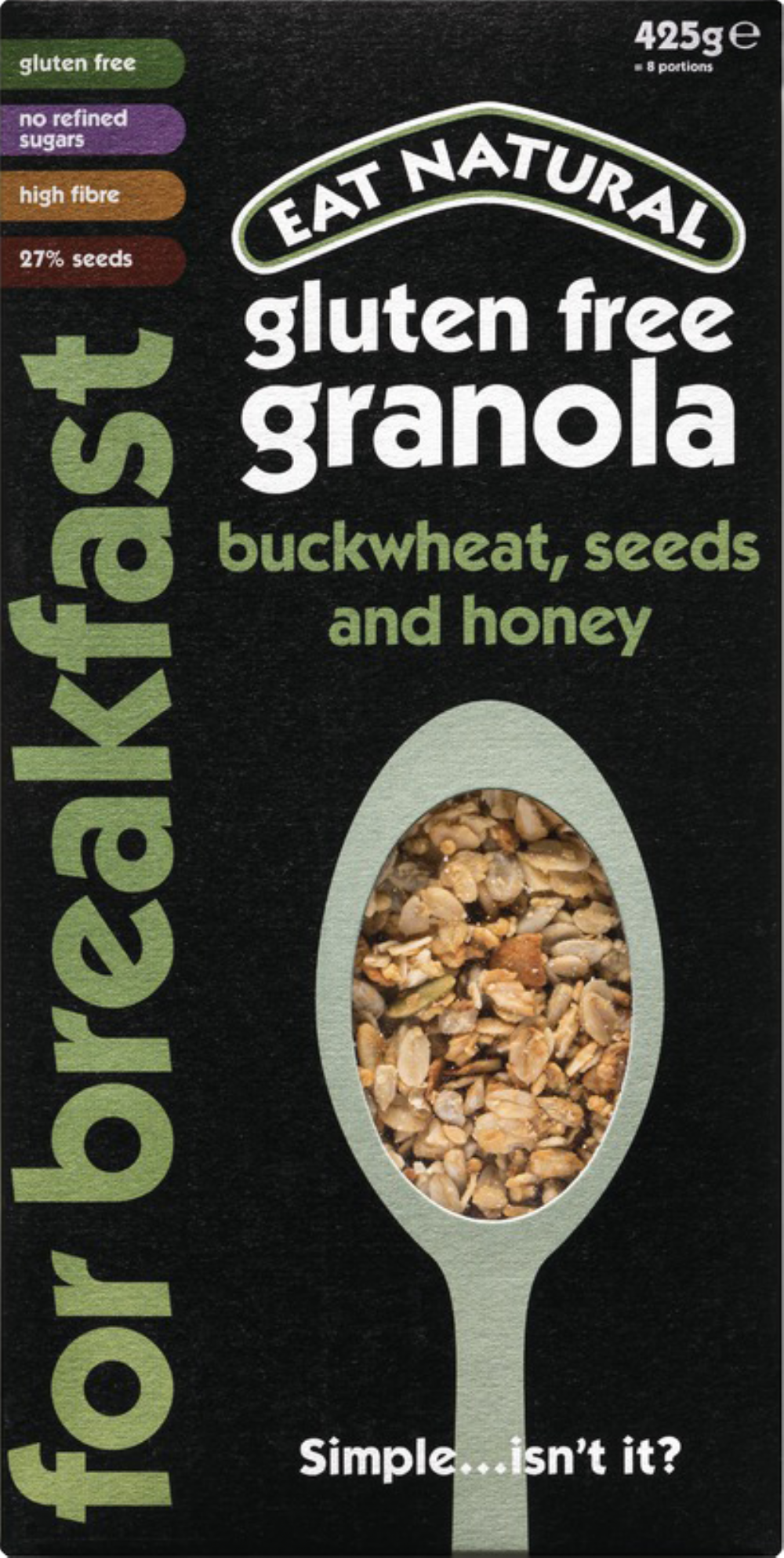 Plump jumbo oats and crunchy buckwheat drizzled in honey and a little rapeseed oil before slow roasting. This nutty mix is combined with roasted chickpeas (for added protein), shreds of lightly toasted coconut and Eat Natural's favourite seeds: sunflower, pumpkin and linseeds. In fact, this three-seed mix makes up more than a quarter of what’s in the box! Crunchy and wholesome.