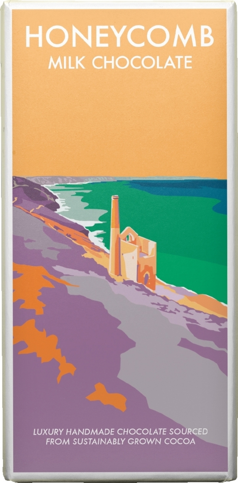 Our milk chocolate bar laced with tiny shards of sweet, yummy honeycomb. It’s like panning for gold! Made with sustainably sourced cocoa from The Ivory Coast, handcrafted in Cornwall.