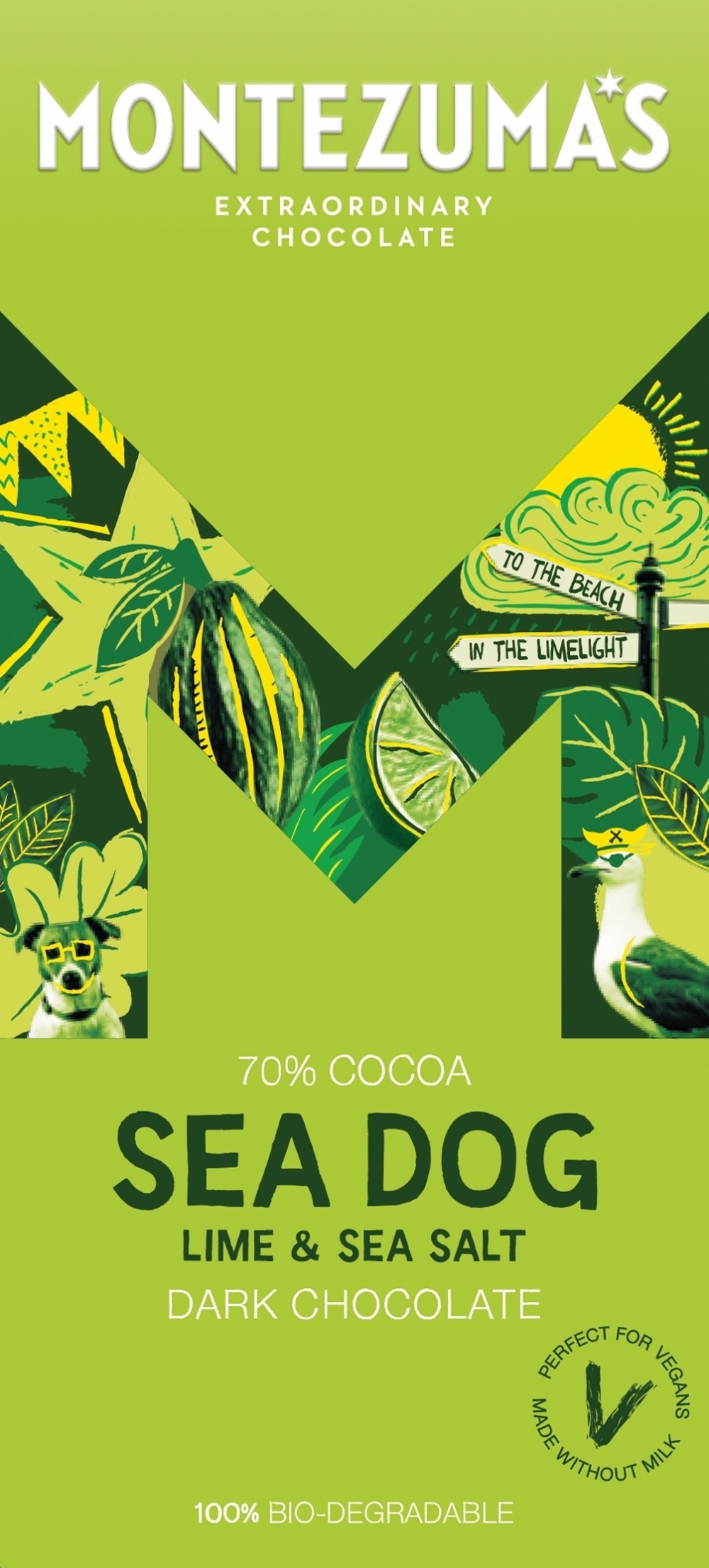 Dark Chocolate 99% (Cocoa Mass, Sugar, Cocoa Butter, Emulsifier: Soya Lecithin & Vanilla Extract), Sea Salt 0.2% & Natural Flavouring: Lime Oil.