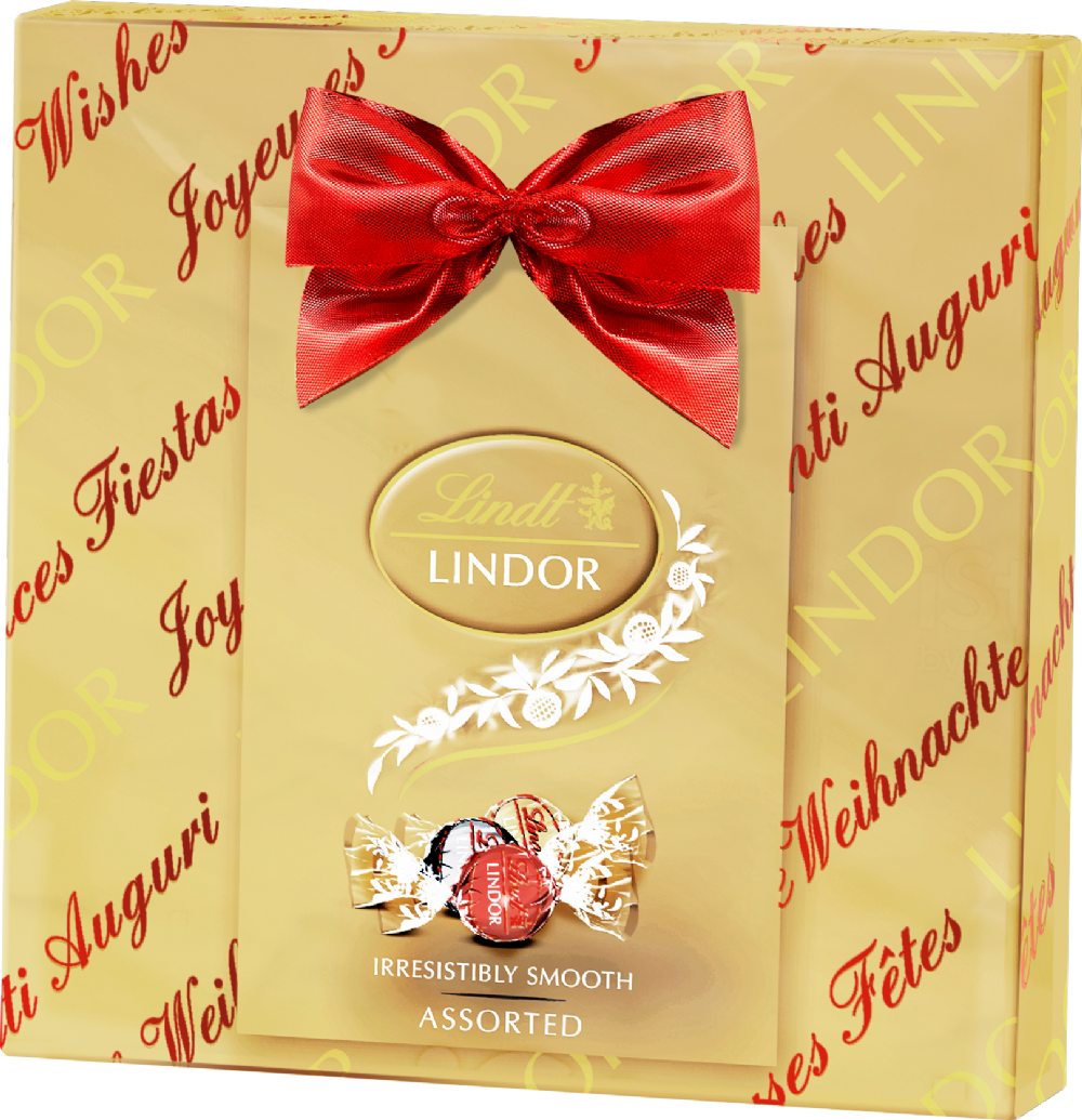 Discover our irresistible selection of Lindor Assorted Chocolate Truffles, lovingly wrapped in a glistening gold gift box. Untie the beautiful red bow and peel back the gold wrapping paper to reveal a selection of luxuriously smooth Milk, sweet White and intense Dark Lindor Chocolate Truffles hiding irresistibly creamy, melt-in-the-mouth, chocolate centres perfect for treating yourself, or your loved ones.