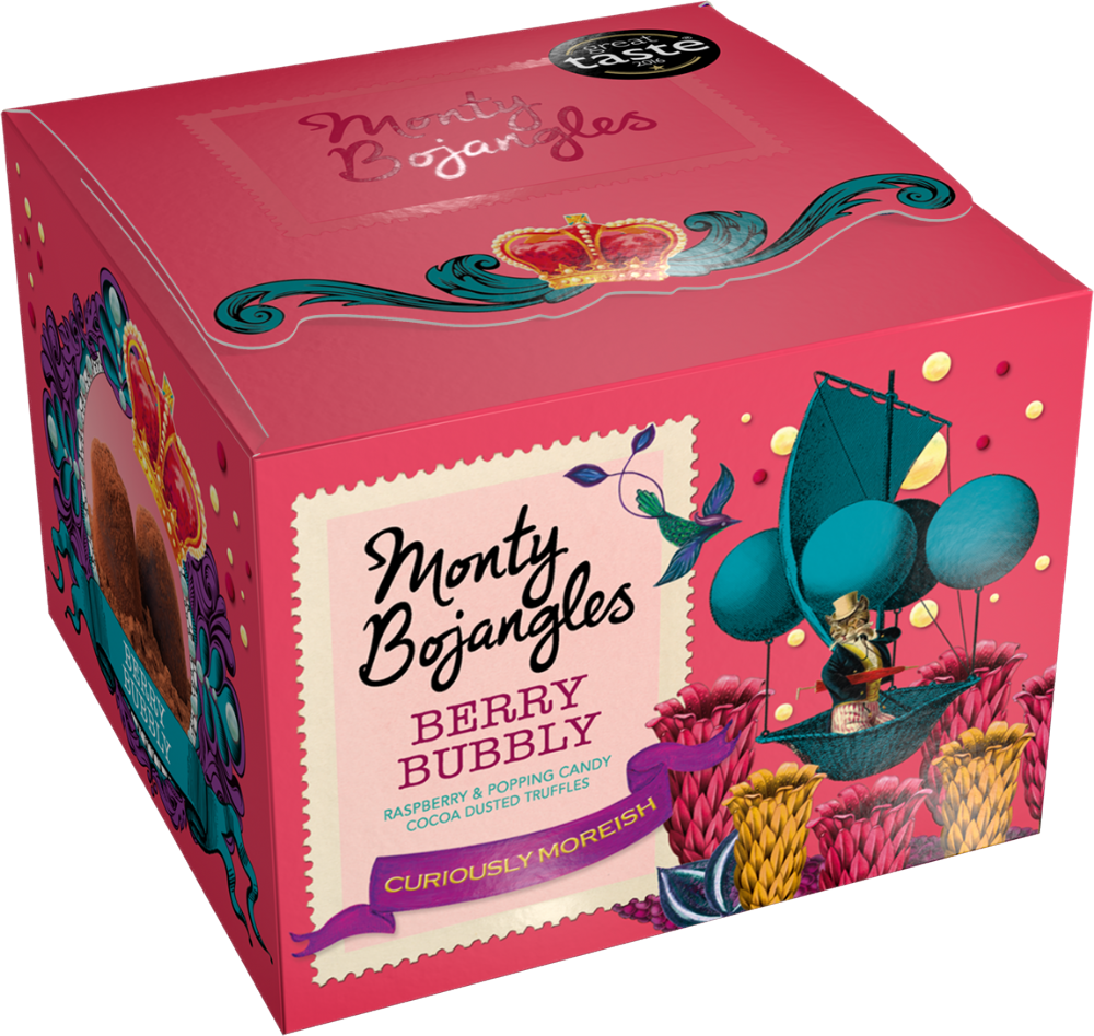 A fruity berry cocoa dusted truffle packed with fun popping candy, a flavour explosion for your taste buds!