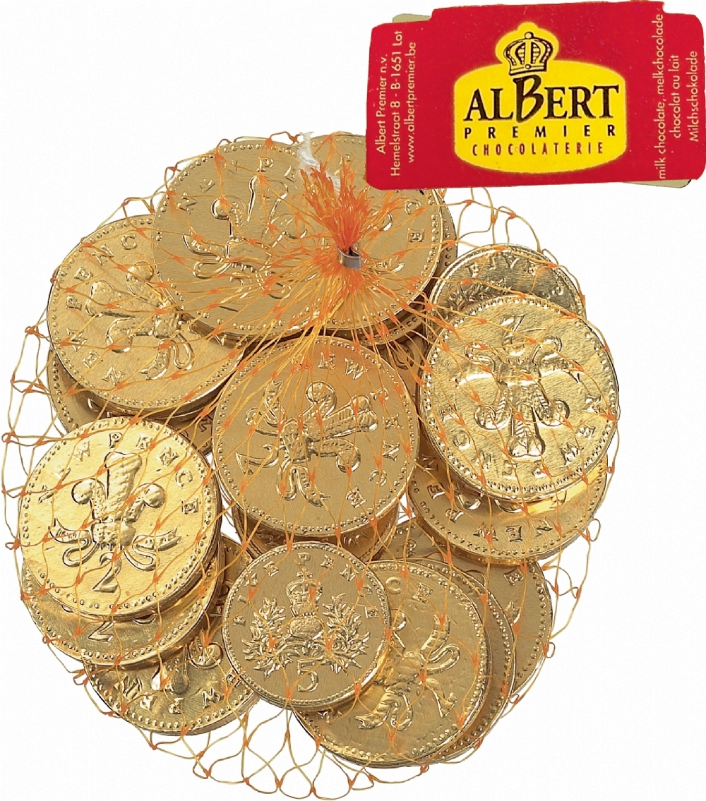 Milk chocolate foiled coins in various sizes. A traditional Christmas favourite.