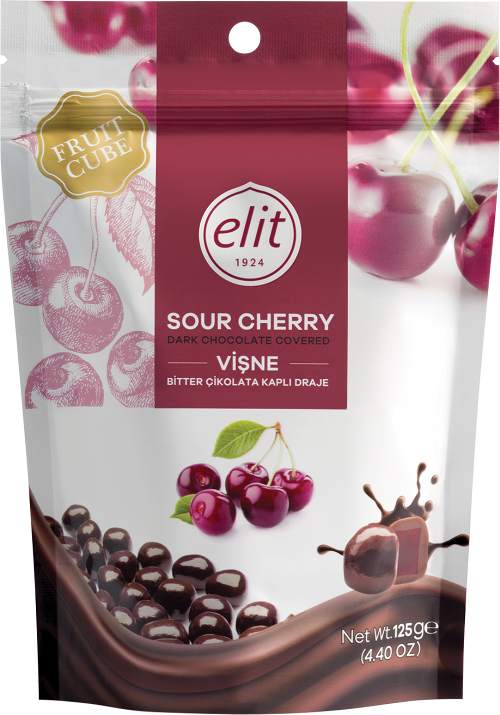 Dark Chocolate (60%) (Sugar, Cocoa Mass, Cocoa Butter, Emulsifier (Sunflower Lecithin), Vanillin (Artificial Flavouring)), Sour Cherry Centre (39.5%) (Apple Juice Concentrate, Sour Cherry Juice Concentrate (10%), Gelling Agent (Pectin), Acid (Citric Acid)), Glazing Agent (Gum Arabic).