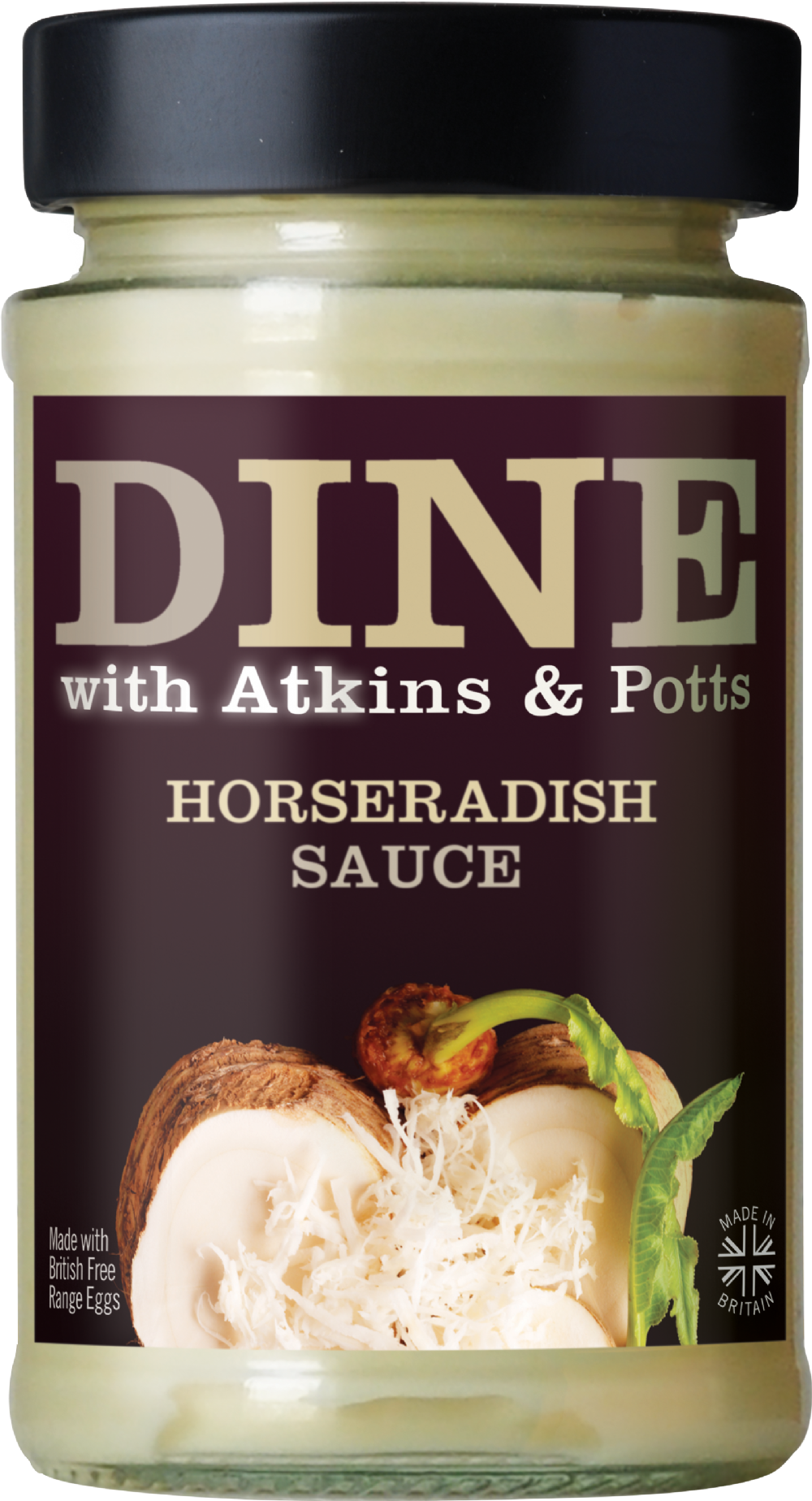 DINE IN Horseradish Sauce prepared with care from the finest ingredients is delicately creamy at the outset with the warm glow of fresh horseradish fighting through. The traditional accompaniment for roast beef it’s also excellent with smoked fish in mashed potatoes and with eggs.