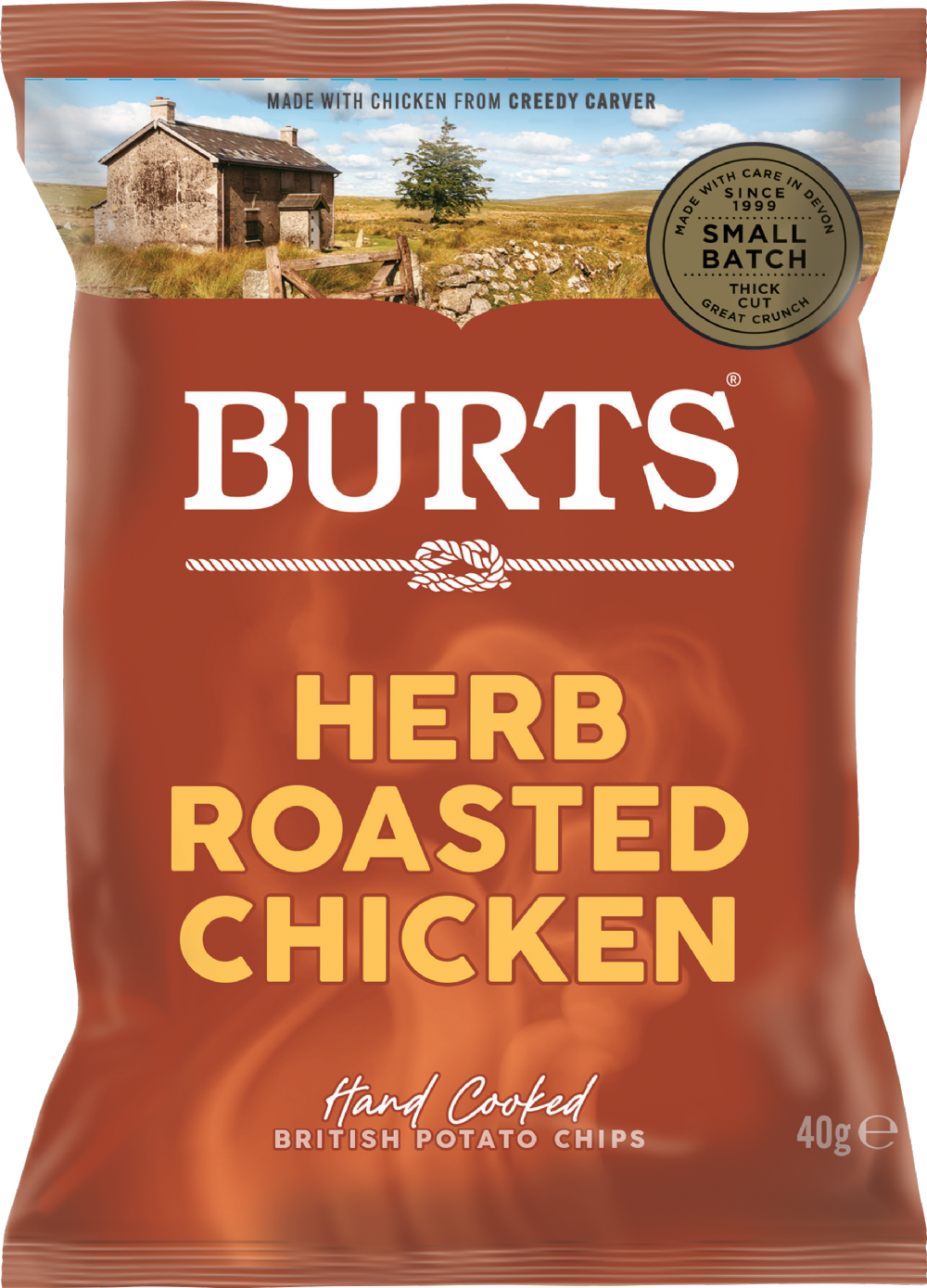 Rich roasted chicken seasoned with a blend of herbs, tastes like yer Devonshire Sunday lunch in a bag! These lush hand cooked potato chips are made using the finest local Chicken from our partners at Creedy Carver, Devon. New to the range, and absolutely ‘andsome!