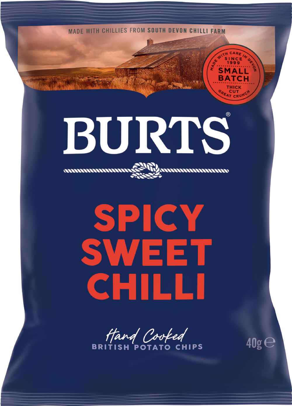 It can get bracin' down 'ere, this is how we warm up. Hand cooked potato chips with spicy sweet chilli flavour, made using varieties from our local South Devon Chilli Farm.