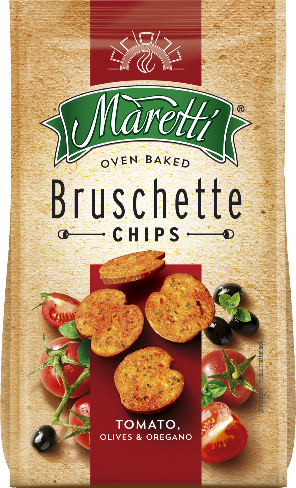 A traditional Mediterranean flavour of juicy tomatoes, dark olives and fresh oregano on deliciously crunchy, double-baked bread circles.