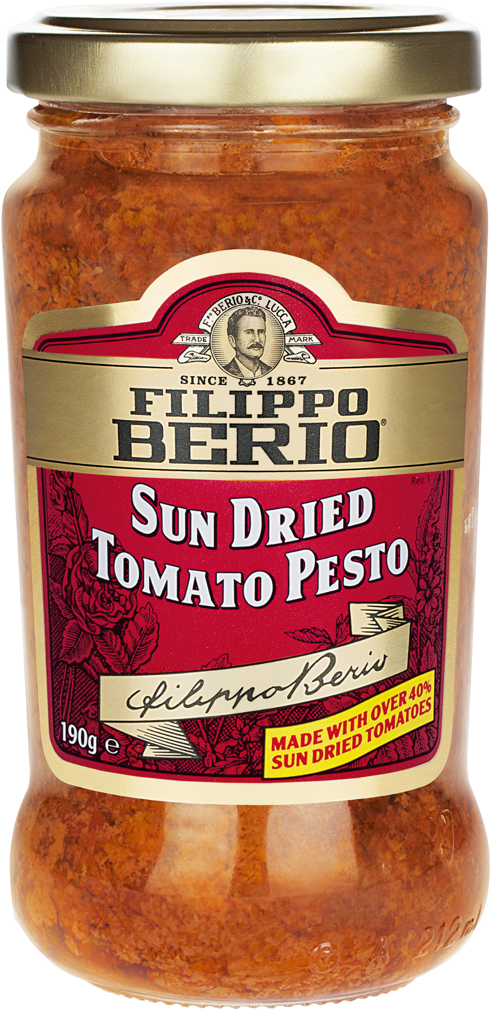 Made with 40.2% delicious sun dried tomatoes, fresh Ligurian basil, Grana Padano cheese, cashew nuts and Filippo Berio Extra Virgin Olive Oil. Simply stir our sundried tomato pesto into pasta for a convenient and delicious meal. Or why not top with grated cheese and grill for a richer flavour? You can also use Filippo Berio Sundried Tomato Pesto to add flavour to jacket potatoes and sandwiches, on bruschetta and to add zing to soups, gravy and casseroles.
