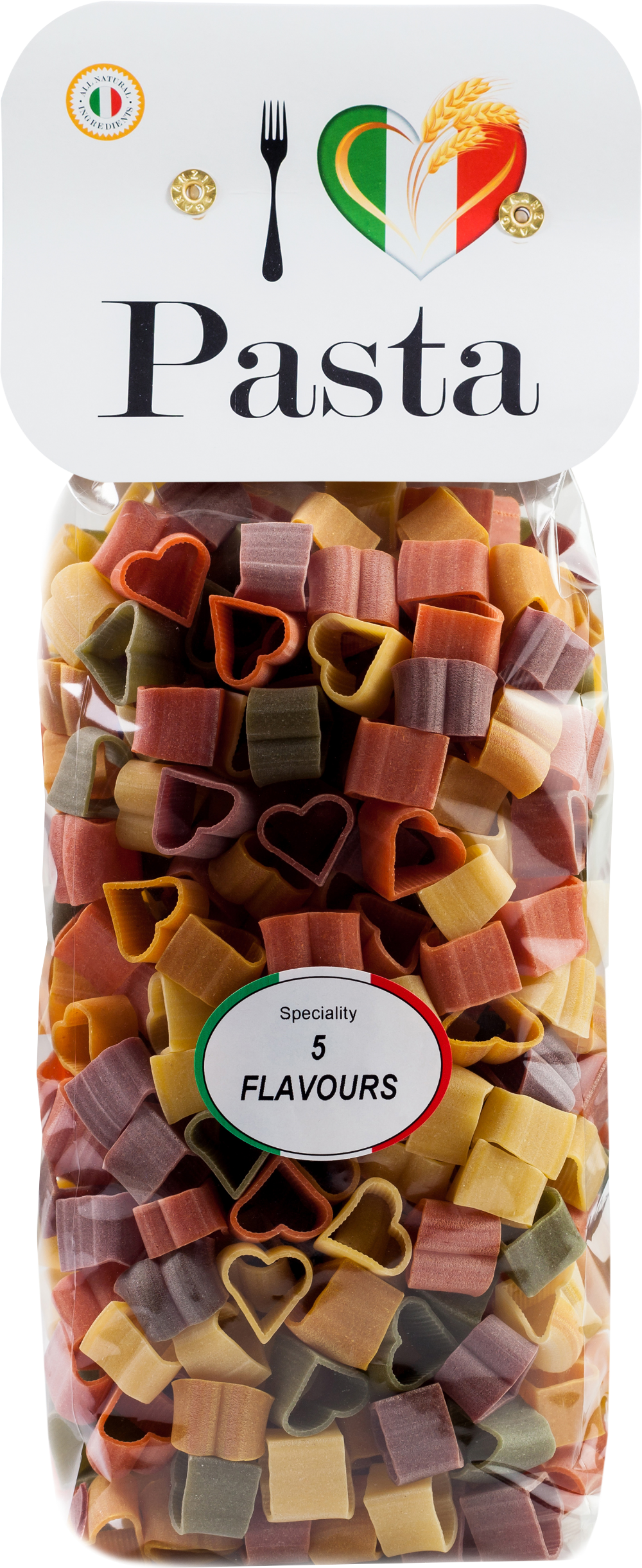 Durum Wheat Semolina, Dehydrated Spinach Powder 3%, Dehydrated Beetroot Powder 3%, Dehydrated Tomato Powder 2%, Turmeric 2%.