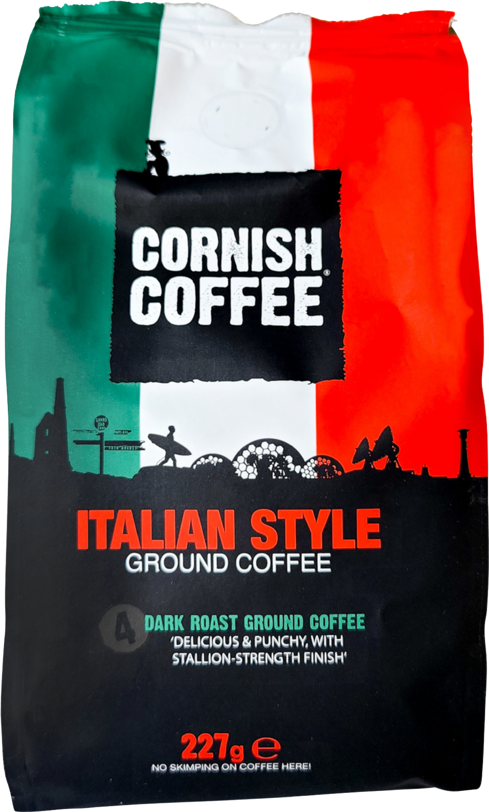 Delicious & punchy, with a stallion strength finish. Our Cornish Coffee is a unique blend which will delight your palate and stir your senses. Designed to be an all-day and everyday coffee, Cornish Coffee Italian Style provides a good honest cup, that you will love. Based on Italy's historic passion for strong, dark-roast coffee, this quality blend of beans from Latin America and Asia is strong in body with a molasses type sweetness an chocolate, toasty finish.