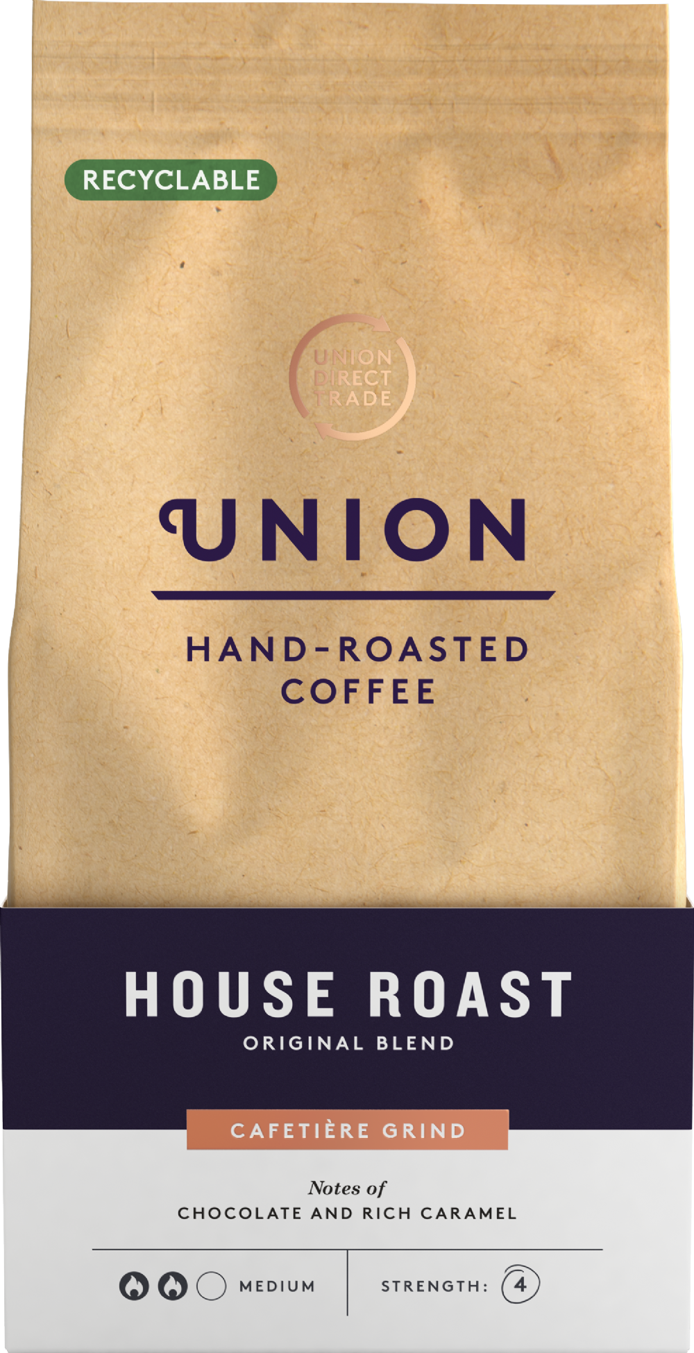 100% speciality Arabica coffee. Strength - medium roast - 4. This original house roast is unmistakably Union: bold intensity infused with a deep natural sweetness. West Coast inspiration brought to life in London and one of Union's best-loved blends since 1995. Exquisite coffees from smallholder farms including Chirinos in Peru and Asprotimana in Colombia. Notes of Dried Fruit and Milk Chocolate Hand-roasted in small batches to develop delicious flavour and aroma for each individual coffee.