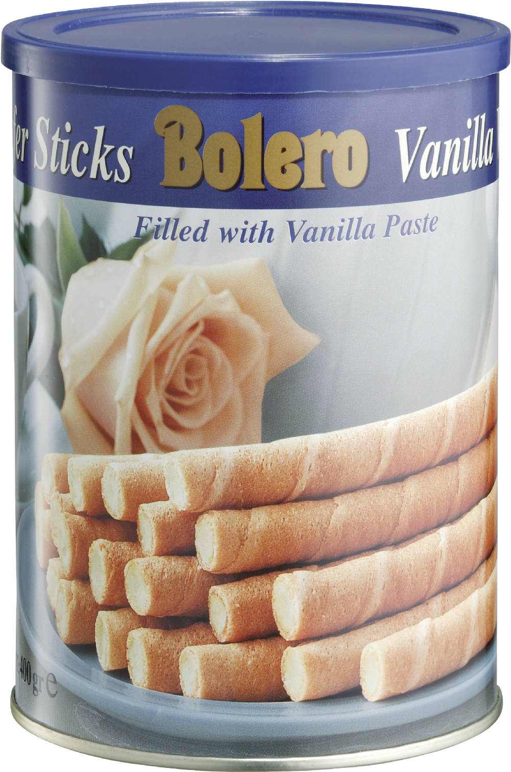 Wafer sticks filled with a vanilla cream paste, perfect with coffee.
