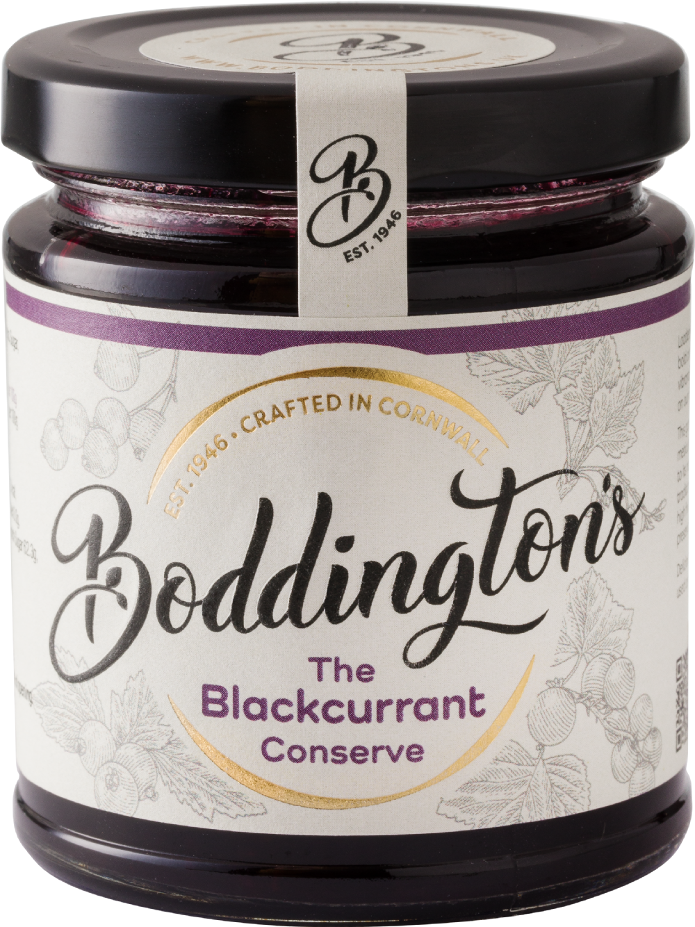 Loaded with tangy blackcurrants for a bold and natural flavour; Boddington's vibrant Blackcurrant Conserve is crafted on our family farm in Mevagissey, Cornwall. This gorgeous, deep-coloured extra jam is meticulously slow-cooked in small batches to its natural setting point, using our own traditional recipe. We're proud of the very high fruit content, with no artificial preservatives or any added pectin. Delicious when stirred into porridge or used as a base for a tangy sauce.