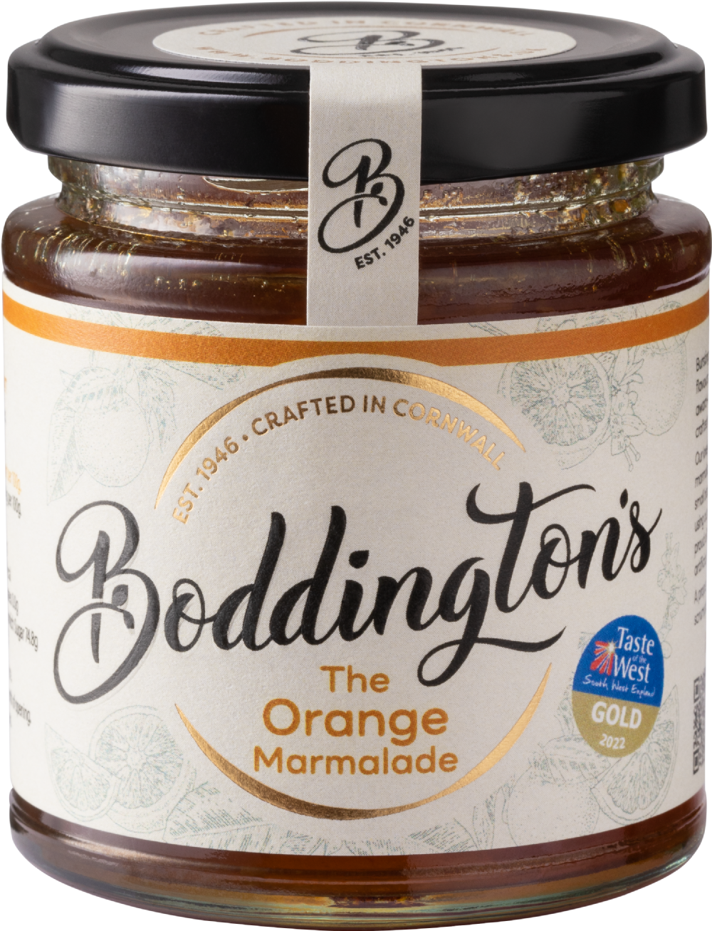Savour the vibrant, natural flavour of Boddington's Orange Marmalade, an award-winning preserve lovingly crafted on our family farm in Mevagissey, Cornwall. This delightful fine to medium-shred marmalade is made using a traditional recipe, ensuring each jar is bursting with fruity goodness. Enjoy the authentic taste of Cornwall with our orange marmalade, perfect for spreading on a hot slice of tea cake. Its zesty flavour also makes it a versatile addition to various culinary creations.