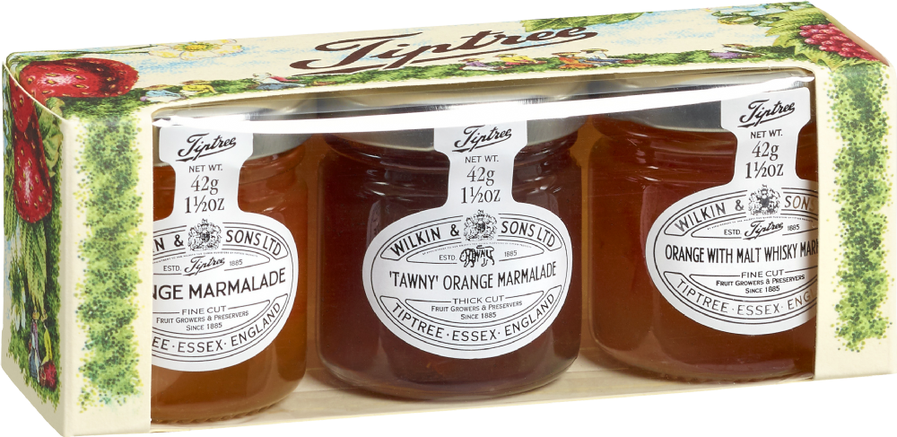 A gift pack containing 3 x 42g jars - Tawny Orange Marmalade Thick Cut, Orange Marmalade with Malt Whisky Marmalade Fine Cut, Orange Marmalade Fine Cut.
