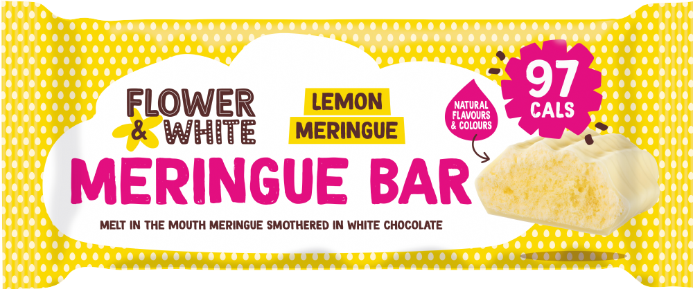 Lemon Meringue Bar covered in white chocolate with a melting meringue middle. 95 calories of light lemony lusciousness per bar. Natural Flavours and Colours. No additives. No nasties.