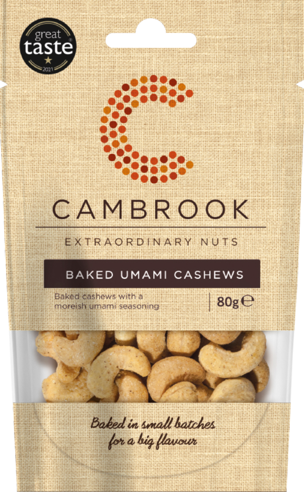 Cashews (95%), Umami Seasoning (3.3%): Sea Salt, Nutritional Yeast, Sugar, Cayenne Chilli Powder, Ancho Chilli Powder, Cumin, Roasted Garlic Powder. Stabiliser: Gum Arabic.
