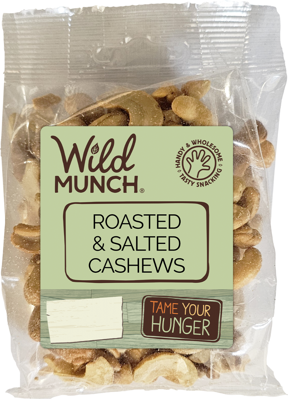 Tame your hunger with Wild Munch Roasted and Salted Cashews. Creamy and crunchy, every handful of our expertly roasted cashews delivers pure, wholesome energy when you need it most.