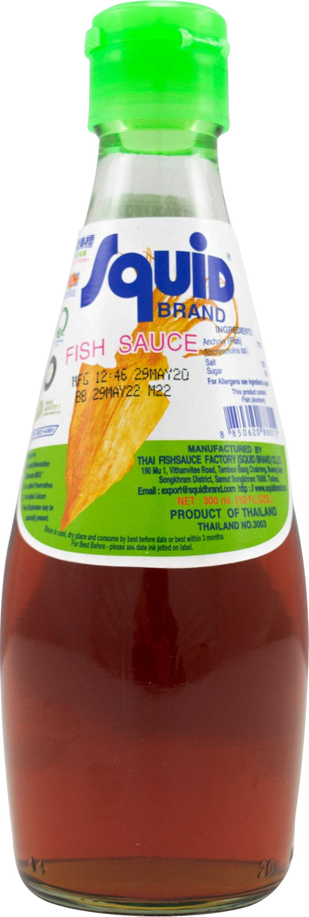 Squid Brand fish sauce is authentic Thai fish sauce, made from fresh anchovies and salt, naturally fermented for 18 months to achieve high quality fish sauce, rich with natural protein, giving it a fragrant aroma and a clear, reddish brown color. With its robust flavour, Squid Brand fish sauce is ideal not only for stir-frying, marinating, but also for dipping.