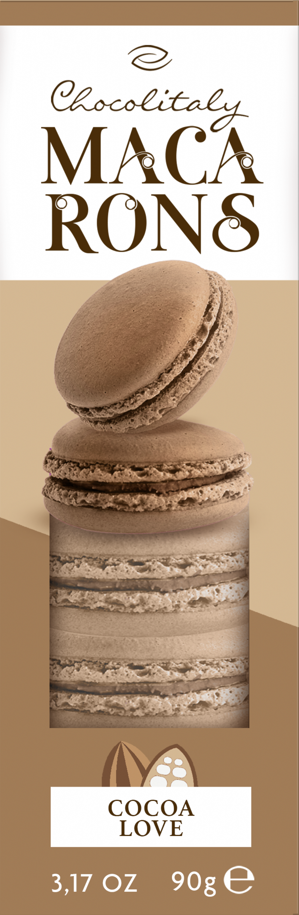 Delicious cocoa flavoured macarons with a creamy filling, made to an original French recipe and packed in attractive display boxes.
