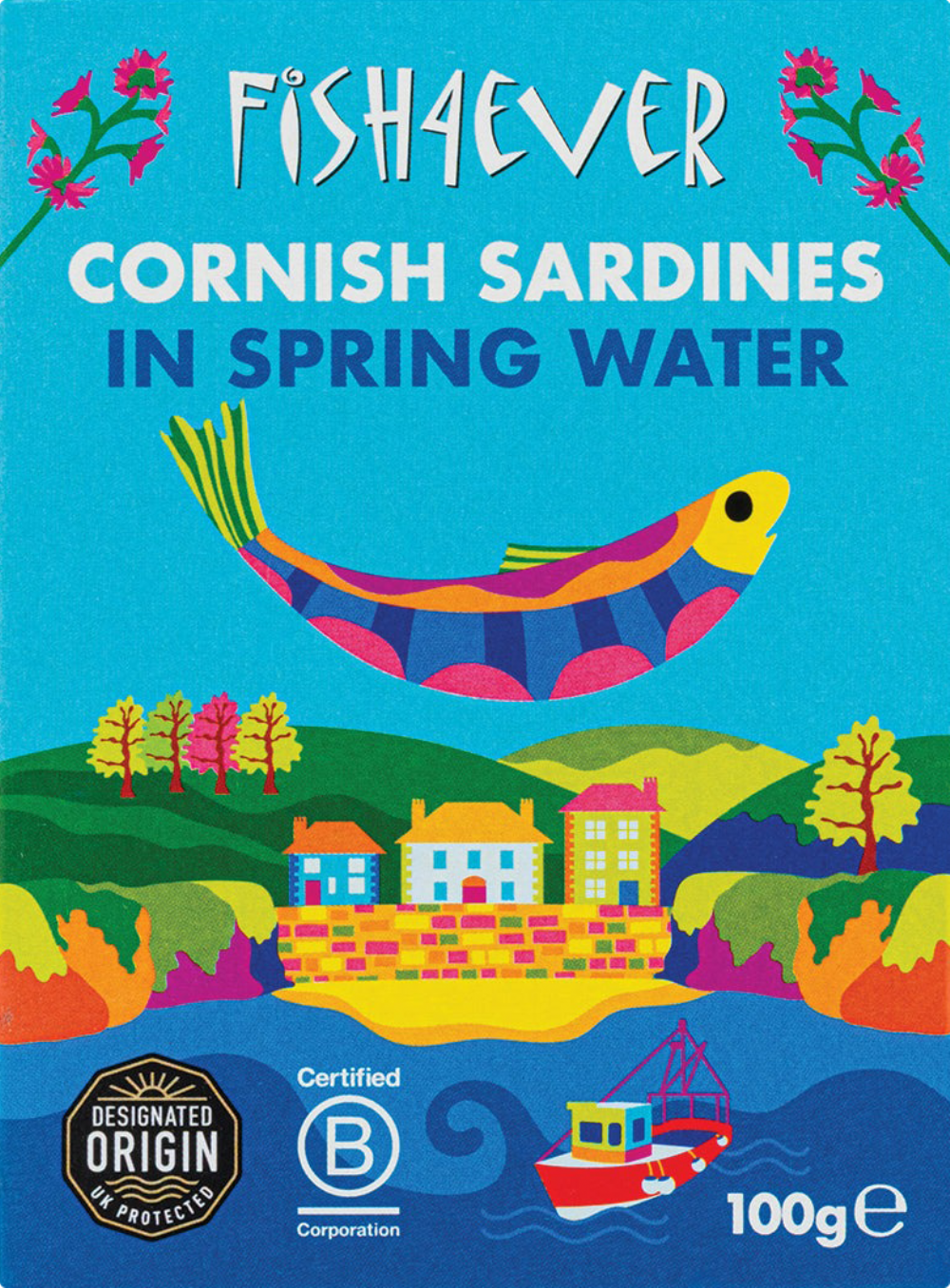 Sardines caught off the coast of Cornwall and landed in Newlyn in small boats. High in Omega 3. UK Protected Designated Origin.