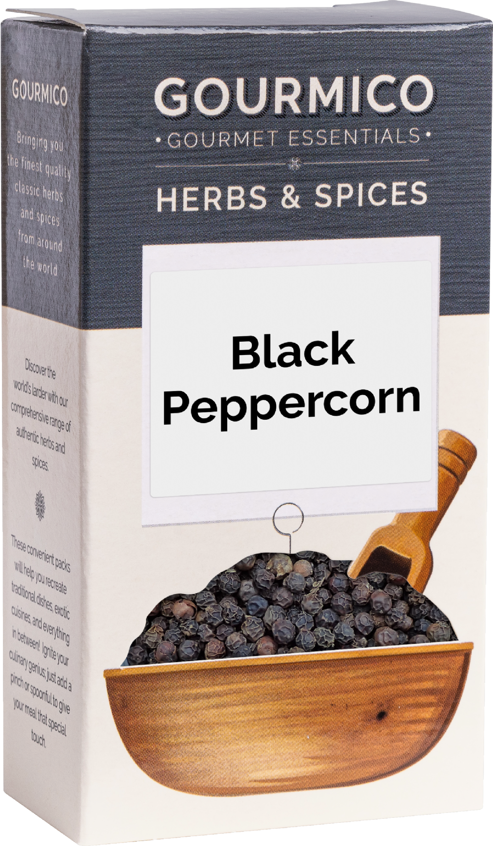 Known for their sharp, hot, and aromatic flavour, black peppercorns are a staple in kitchens around the world. From steaks to stews, Gourmico' Black Peppercorns add a touch of spice that elevates every meal. Let every twist of the grinder transport your tastebuds to the spice markets of the world.