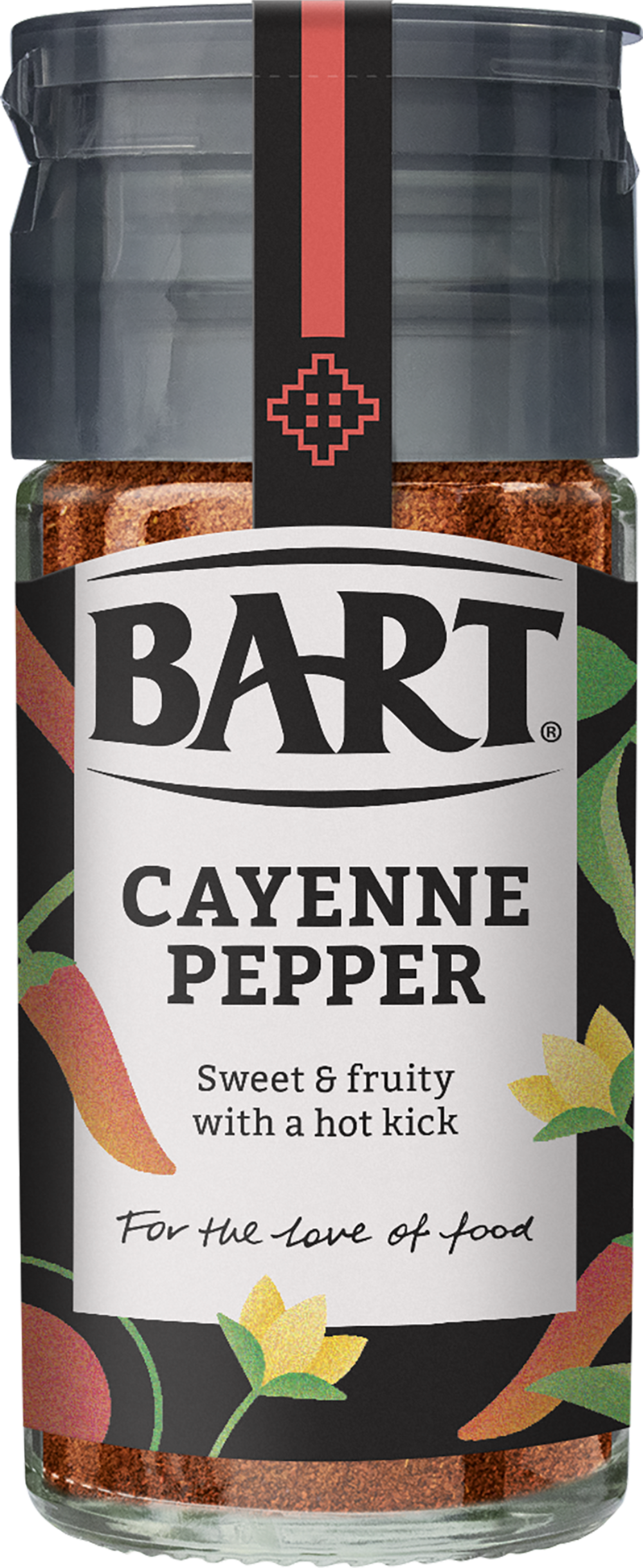 A punchy spice with a hint of sweetness, cayenne is for those who like a bit of heat! Use a pinch to add vibrancy to vegetable soups and curries. Great with seafood and a spicy addition to fruit smoothies and chocolate.