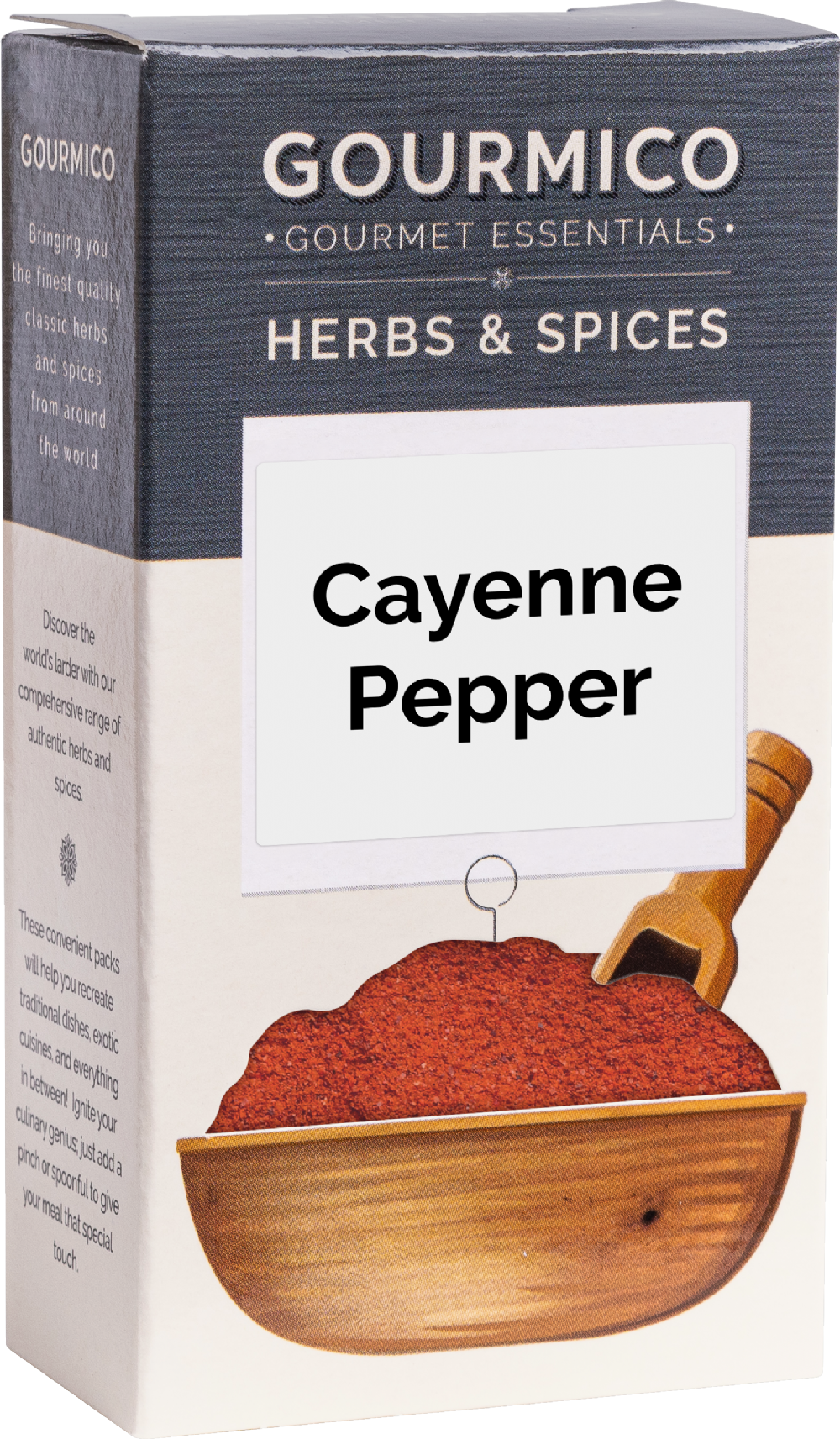Embark on a journey of fiery flavour with Gourmico Cayenne Pepper. Our very hot chilli powder is perfect for those who crave a bold kick in their dishes. Use sparingly.